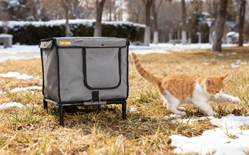 | Features | .A spacious outdoor heated cat house is perfect for multi-cat homes. .A fully enclosed design with a windproof door curtain. .Waterproof and heat-insulating material. .Elevated base keeps the heated cat house off the ground & prevents moisture buildup. .The outdoor cat house is raised to prevent mud, rain and snow from affecting the winter cat house. |