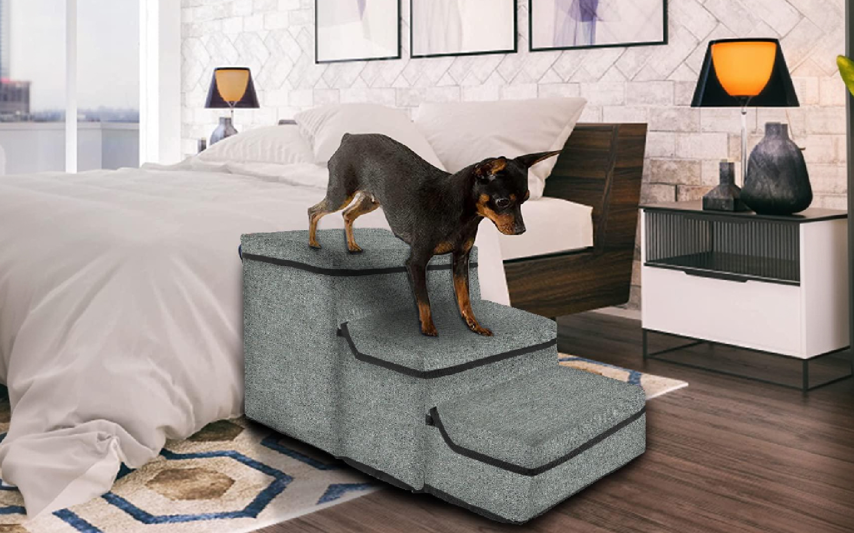 | Features | STEADY & FOLDABLE: With a 30D high density foam and eco-friendly support board, this dog stair offers enhanced stability. It can also be folded into a basic dog bed for your furry puppy to sleep. EASY TO CLEAN - The dog step features a removable and washable cover, which can be cleaned by hand or in the washing machine. This saves you time and makes cleaning incredibly convenient. |